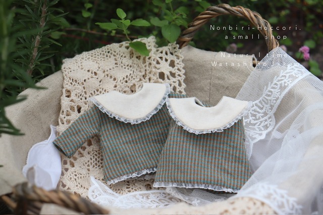 小さな洋品店 - Natural time. - 小さな女の子たちのためのお洋服… かわいいお洋服でお人形さんもおしゃれに.。 ◌販売内容◌ チェック柄のトップス…1点 ▲1枚目お写真のお洋服1点の販売となります▲ 1点のみの販売でその他はつきませんのでご注意下さい. size 22㎝dollさん( ブライス可動ボディさん ) 当店オリジナルの着せ替え人形さん モンストドールさん qbabyさん(fatbody) 個体差はあります. 総丈 : 約 7.5 - 8 ㎝ 個体差はあります. ※こちらはハンドメイド商品です. ご理解のある方のみご購入お願いいたします。 ご購入前に↓の注意事項を必ずご確認下さい. ▲注意▲ 1つ1つの手作業の為刺繍やレース・飾りのサイズや配置・バランスは個体差があり、お使いの端末によりお色味やバランスなどお写真との誤差がある場合がございます.細かい指定などはできません.ご了承下さい. ▲お洋服の着用感について▲ 当店のお洋服はゆったりふんわりな作りです. ぴったりシルエットをご希望の方はご遠慮下さい.