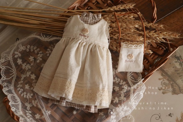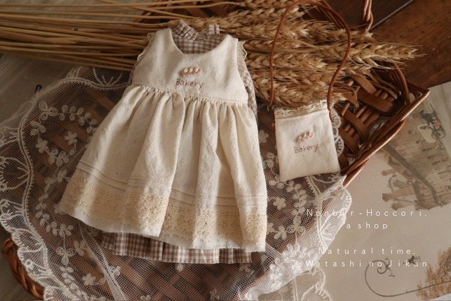 小さな洋品店 - Natural time. - 小さな女の子たちのためのお洋服… かわいいお洋服でお人形さんもおしゃれに.。 ◌ 販売内容 ◌ パン刺繍のお洋服set ・パン刺繍のエプロンワンピース…1点 ・シンプルワンピース…1点 ・小さなショルダーbag…1点 ▲1枚目お写真のお洋服1setの販売となります▲ その他はつきませんのでご注意下さい. ▲注意▲ 1つ1つの手作業の為刺繍やレース・飾りのサイズや配置・バランスは個体差があり、お使いの端末によりお色味やバランスなどお写真との誤差がある場合がございます.細かい指定などはできません.ご了承下さい. ▲お洋服の着用感について▲ 当店のお洋服はゆったりふんわりな作りです. ぴったりシルエットをご希望の方はご遠慮下さい. size 22㎝dollさん( ブライス可動ボディ用 ) 当店オリジナル着せ替え人形さん エプロンワンピース 総丈 : 約15㎝ スカート部分 : 約10㎝ ワンピース 総丈 : 約15㎝ スカート部分 : 約11㎝ ( 首元のフリルは含まず ) bag 約 5㎝×4㎝ ( 持ち手は含まず ) 個体差があります. ※エプロンワンピースは大きめデザインです. 当店のトップスと合わせる重ね着用のため、そのまま着るには大きいのです.ぴったりシルエットをご希望の方はご遠慮下さい.
