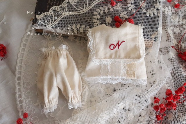 小さな洋品店 - Natural time. - 小さな女の子たちのためのお洋服… かわいいお洋服でお人形さんもおしゃれに.。 ◌ 販売内容 ◌ N刺繍のお洋服set…1set ・刺繍のトップス…1点 ・かぼちゃパンツ…1点 ▲1枚目お写真のお洋服set1点の販売となります▲ 1点のみの販売でその他はつきませんのでご注意下さい. ▲注意▲ お使いの端末によりお色味やバランスなど お写真と違う場合もございます. 1つ1つの手作業の為 刺繍やレース・飾りのサイズや配置・バランスは 個体差がありお写真との誤差がある場合がございます. 細かい指定などはできません.ご了承下さい. ▲お洋服の着用感について▲ 当店のお洋服はゆったりふんわりな作りです. ぴったりシルエットをご希望の方はご遠慮下さい. size 22㎝dollさん( ブライス稼働ボディさん ) 当店オリジナルの着せ替え人形さん モンストドールさん qbabyさん(fatbody) ※モンストドールさんとqbabyさんは お袖が長いタイプです. 萌え袖をご希望の方のみのご購入をお願いいたします. 個体差はあります.