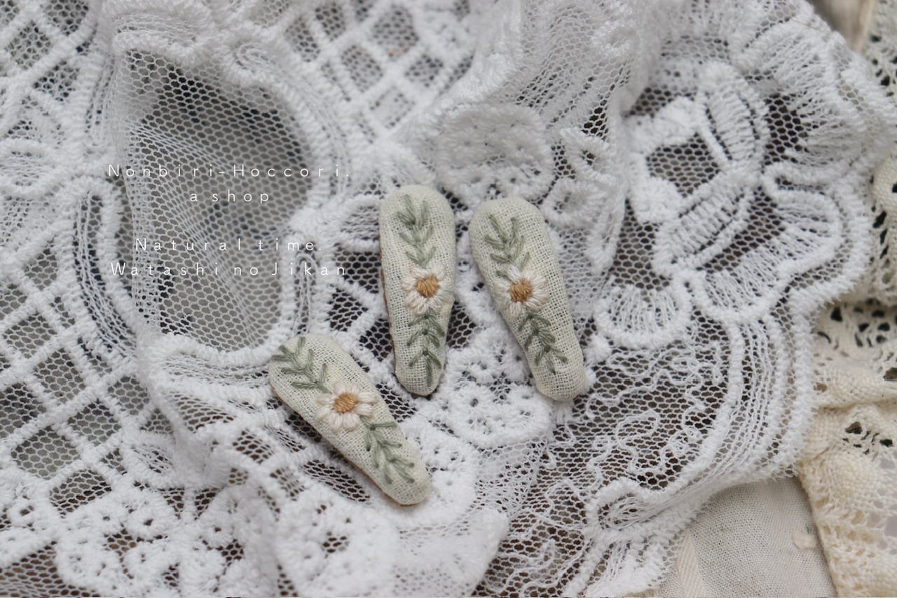 小さな刺繍のぱっちんピン…1点