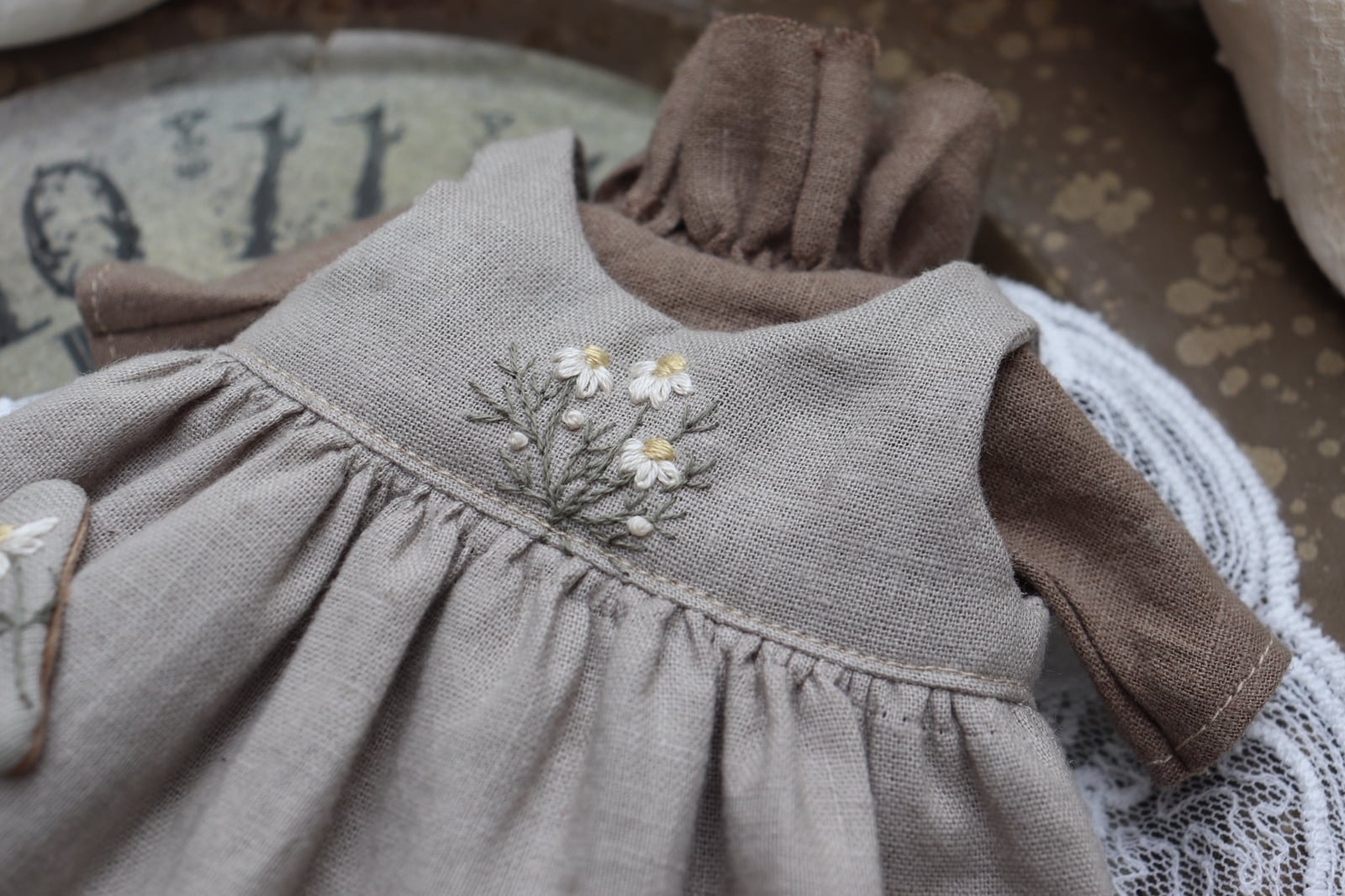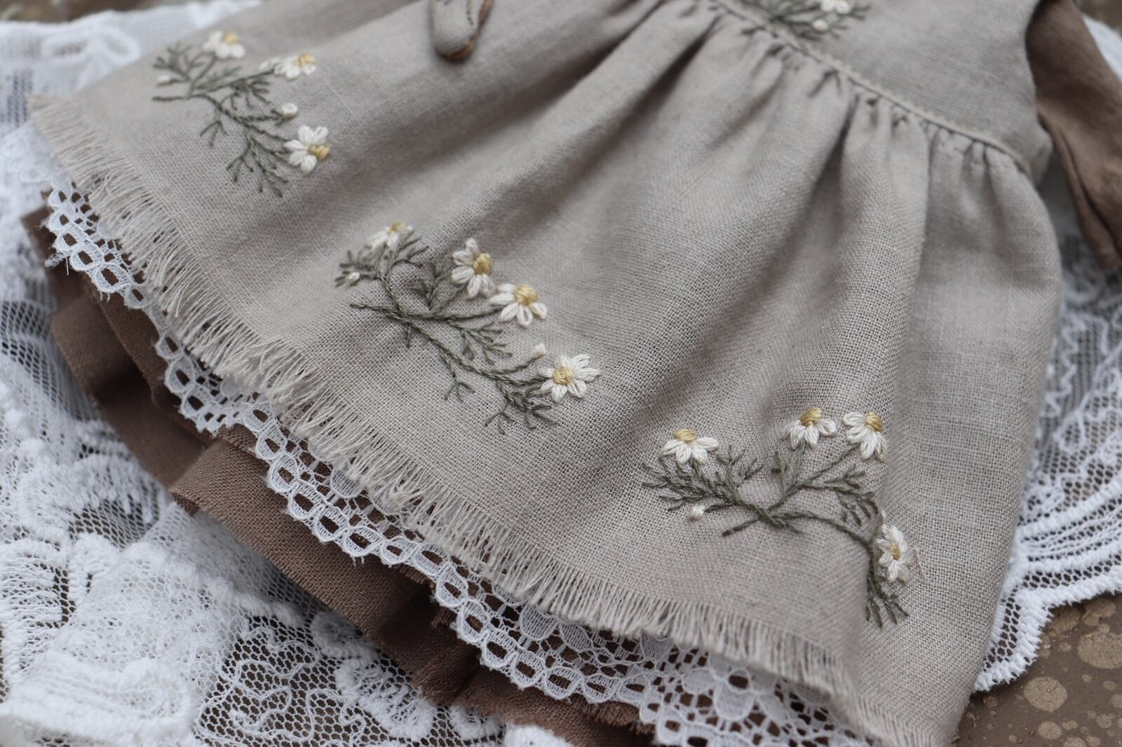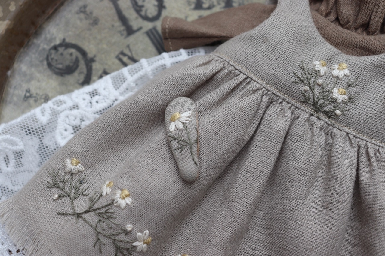 お花刺繍えりのお洋服set