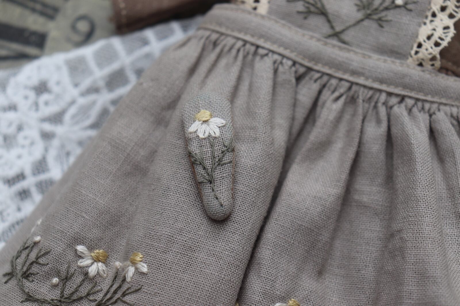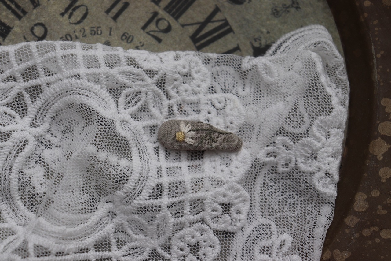 ・小さな刺繍のぱっちんピン…1点