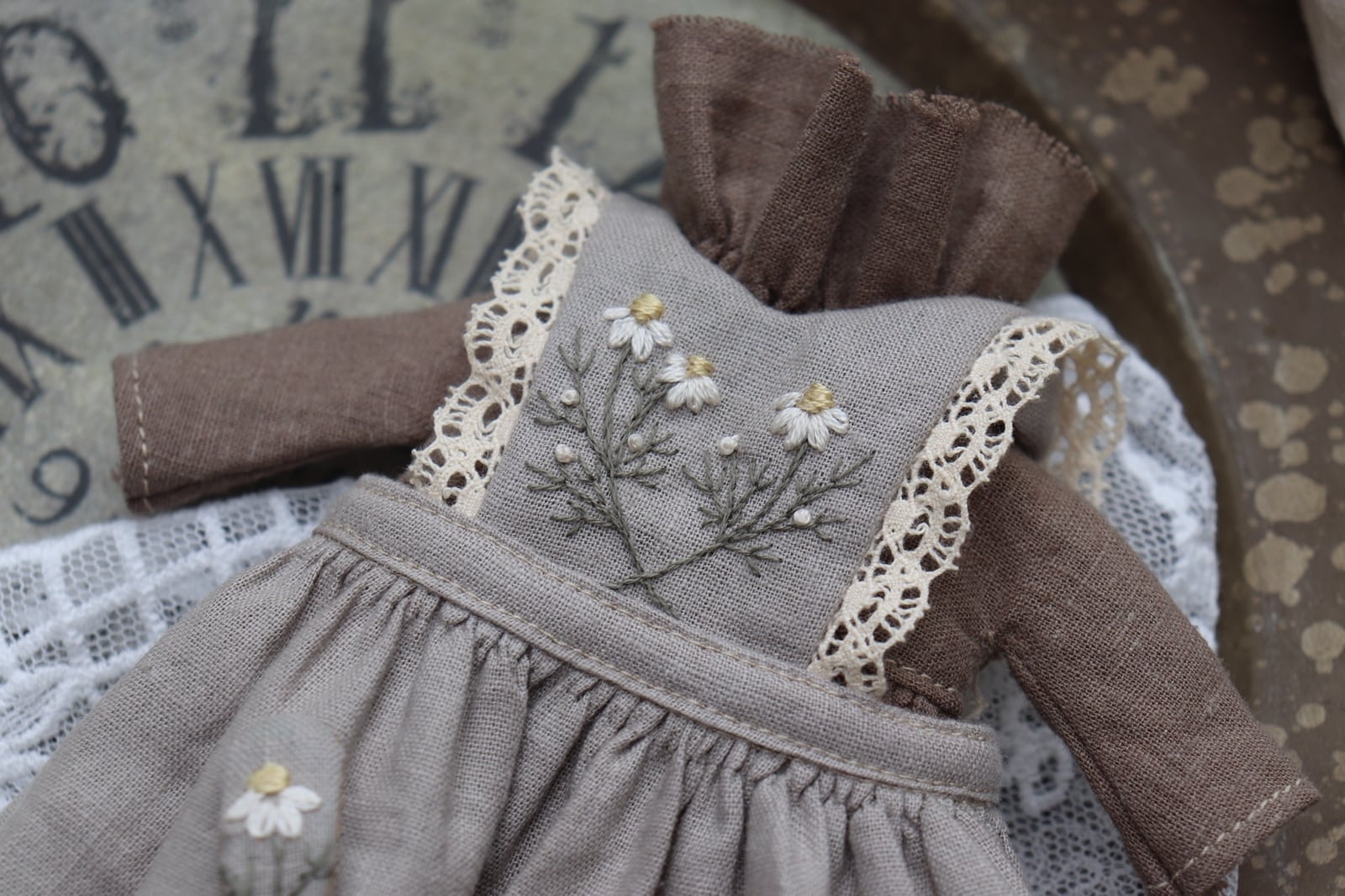 お花刺繍えりのお洋服set