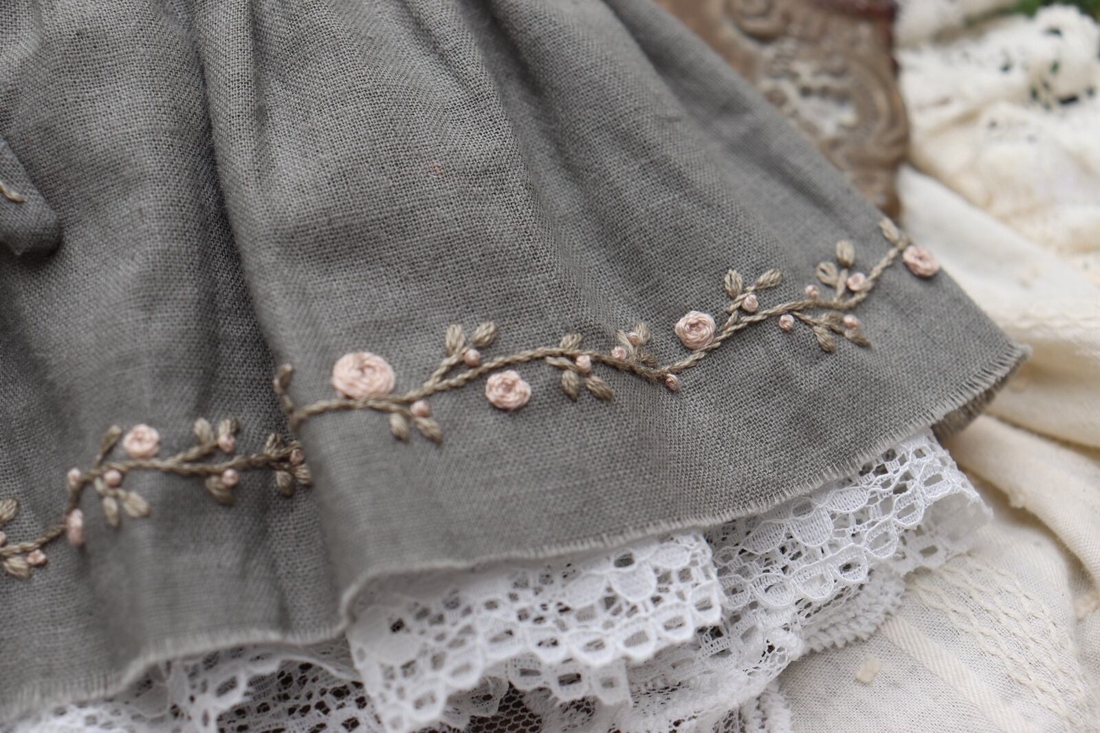 1つ1つの手作業の為刺繍やレース・飾りのサイズや配置・バランスは個体差があり、お使いの端末によりお色味やバランスなどお写真との誤差がある場合がございます.細かい指定などはできません.ご了承下さい.