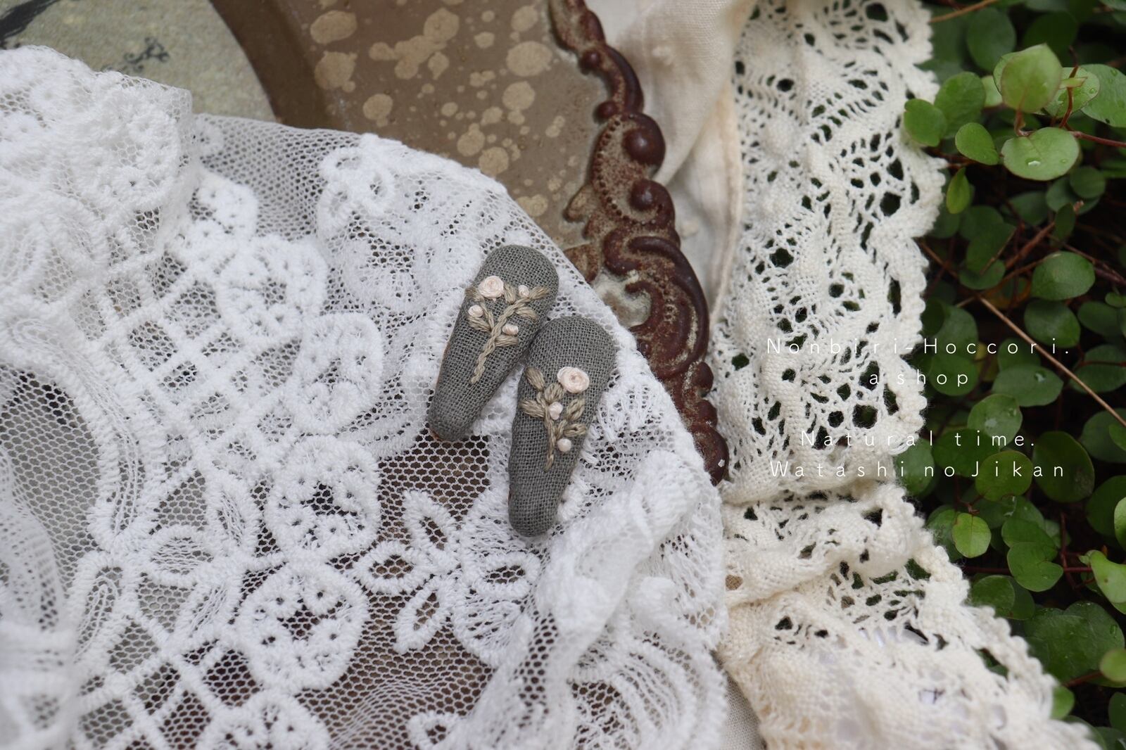 ・小さな刺繍のぱっちんピン…1点