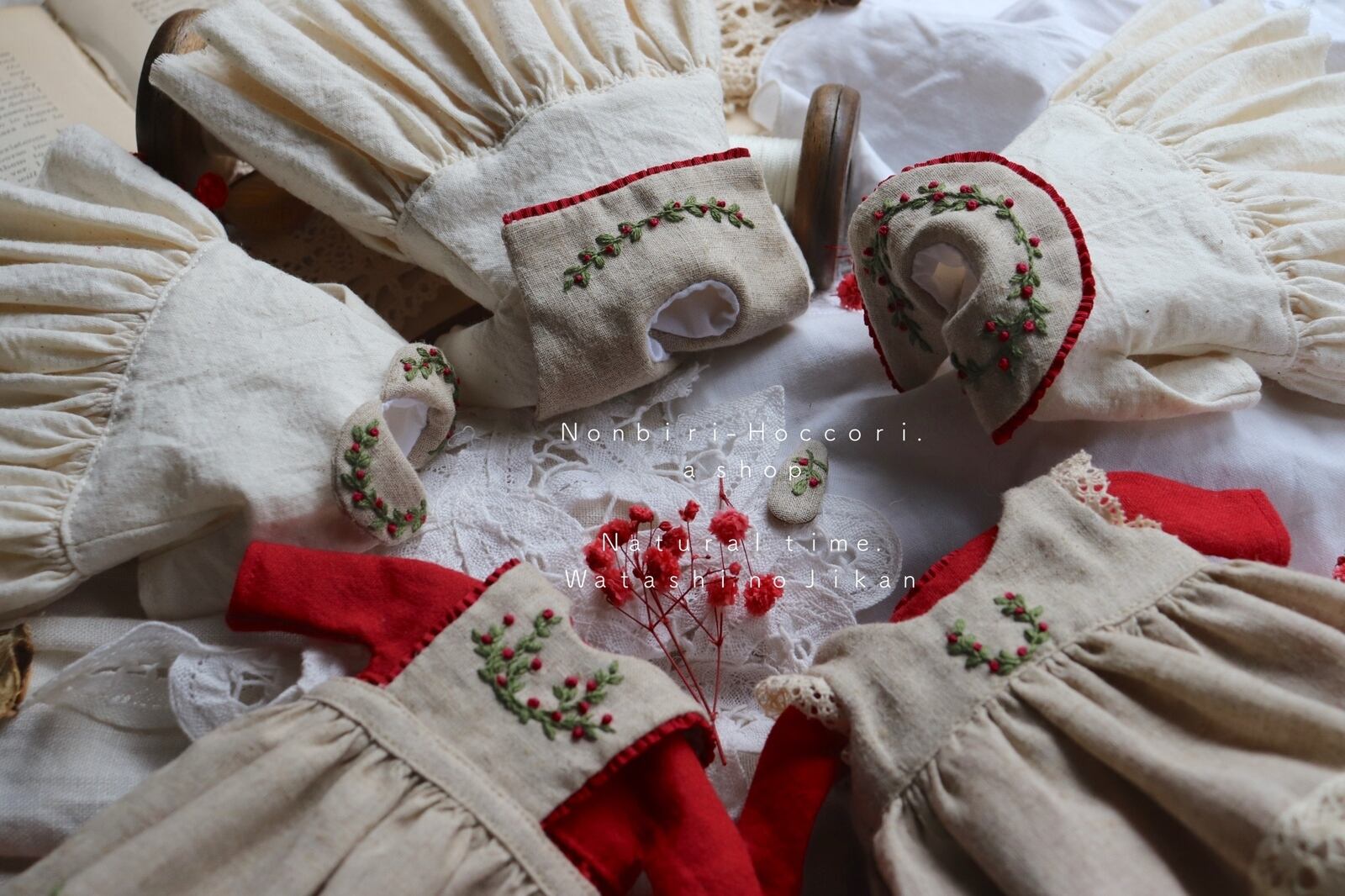 1つ1つの手作業の為刺繍やレース・飾りのサイズや配置・バランスは個体差があり、お使いの端末によりお色味やバランスなどお写真との誤差がある場合がございます.細かい指定などはできません.ご了承下さい.