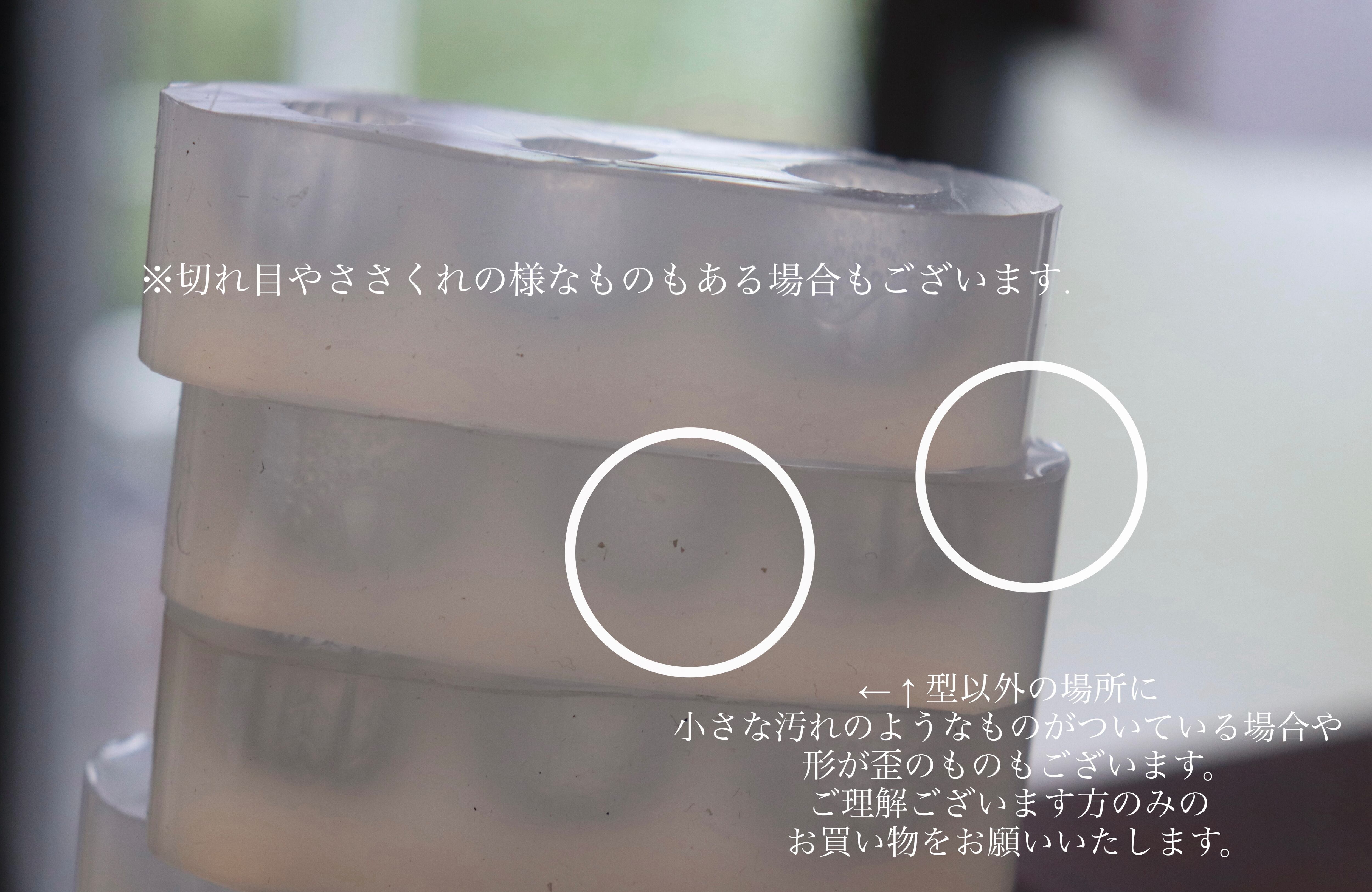 また、こちらの商品は制作元がしっかりと検品しておりますが型から出していただいた時、まれに傷やデザインの違い、模様が入っているなど、ご購入いただいたデザインとちがう場合がございます。その際はお写真を送っていただけましたら在庫がございます場合は交換お手続き、在庫がない場合は返金お手続きをさせていただきます。お手数をおかけいたしますがそちらをご理解の上、ご購入を宜しくお願いいたします。