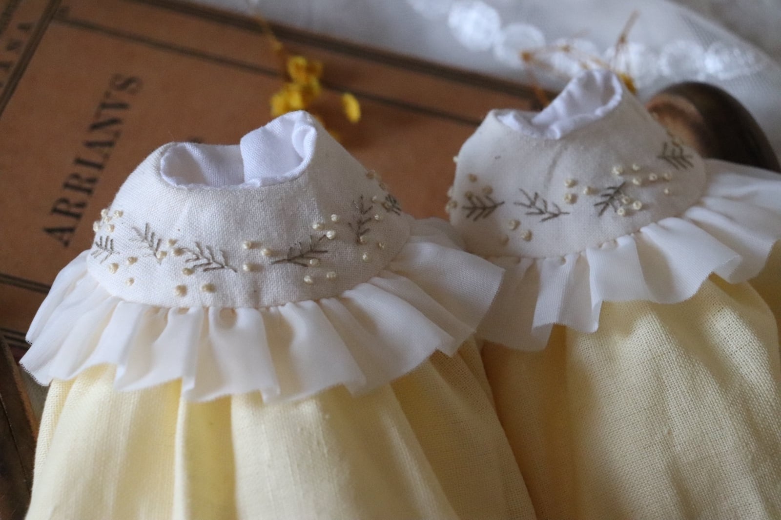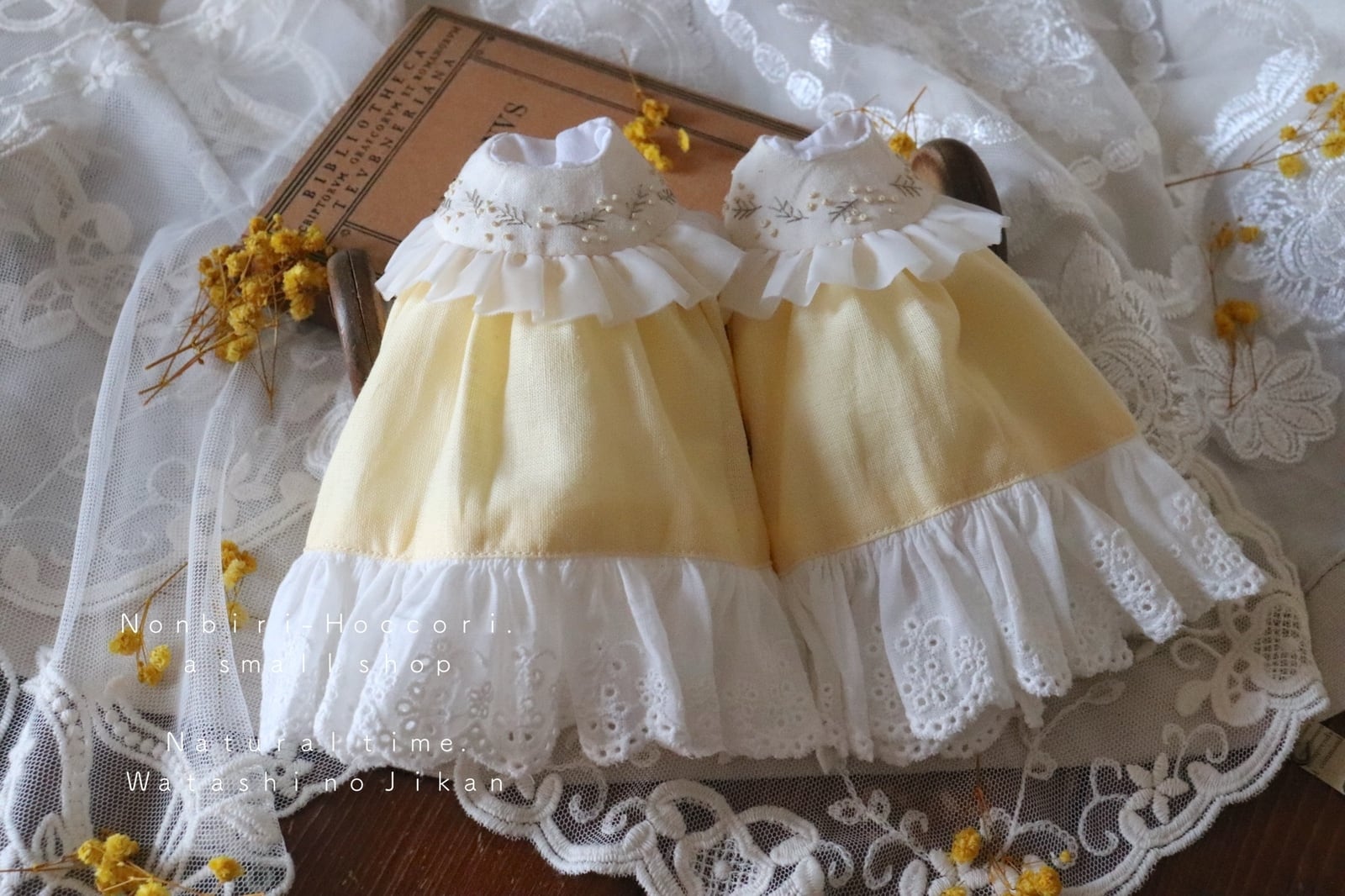 ・ミモザ刺繍えりのワンピース…1点