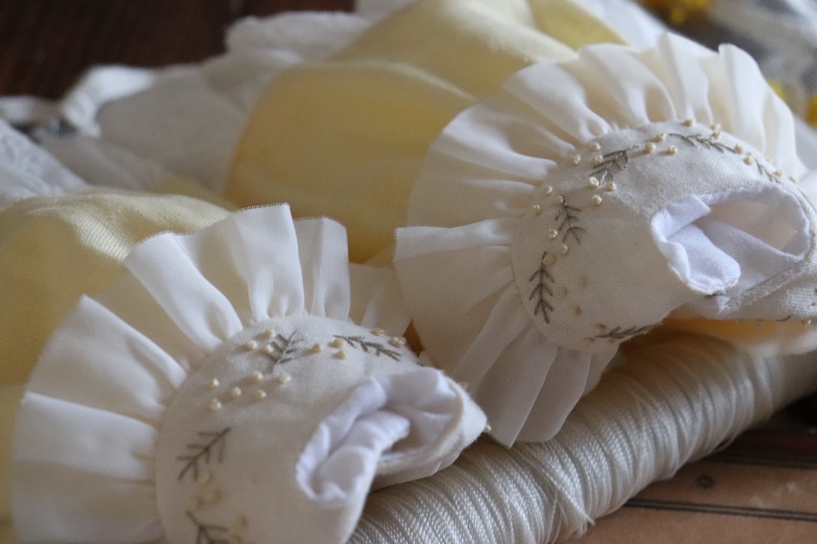 1つ1つの手作業の為刺繍やレース・飾りのサイズや配置・バランスは個体差があり、お使いの端末によりお色味やバランスなどお写真との誤差がある場合がございます.細かい指定などはできません.ご了承下さい.