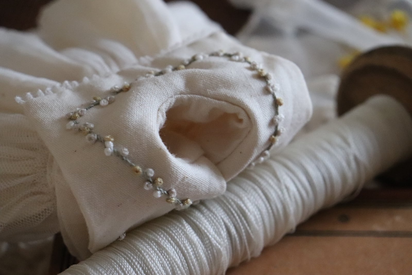 ・ミモザ刺繍えりのワンピース…1点