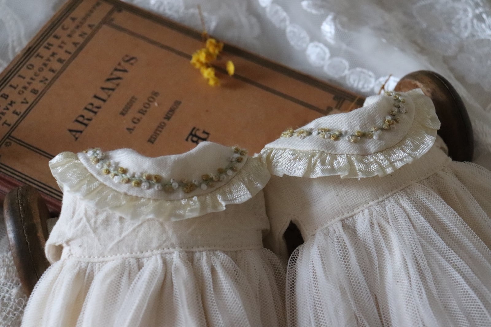 ミモザ刺繍えりのワンピース