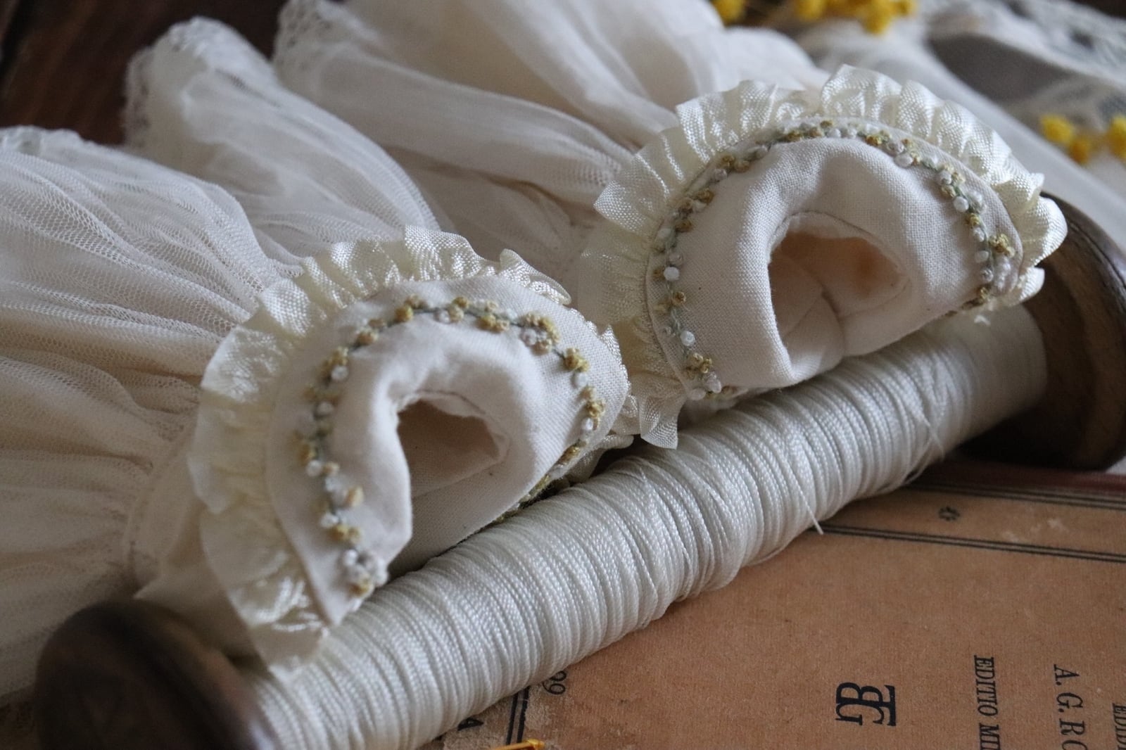 1つ1つの手作業の為刺繍やレース・飾りのサイズや配置・バランスは個体差があり、お使いの端末によりお色味やバランスなどお写真との誤差がある場合がございます.細かい指定などはできません.ご了承下さい.