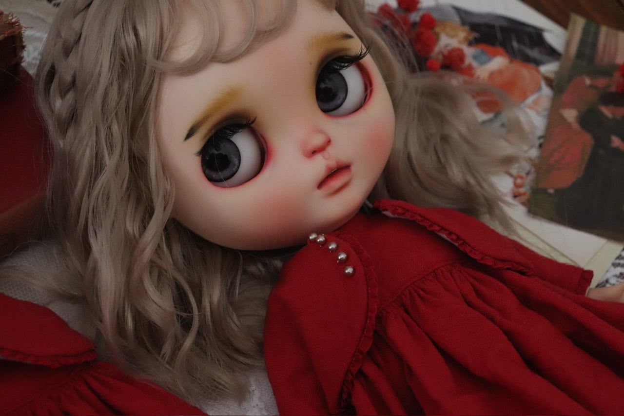 えりなど大きめデザインの為、ブライスさんくらいのお顔の大きさの子・可動ボディさんにおすすめです.