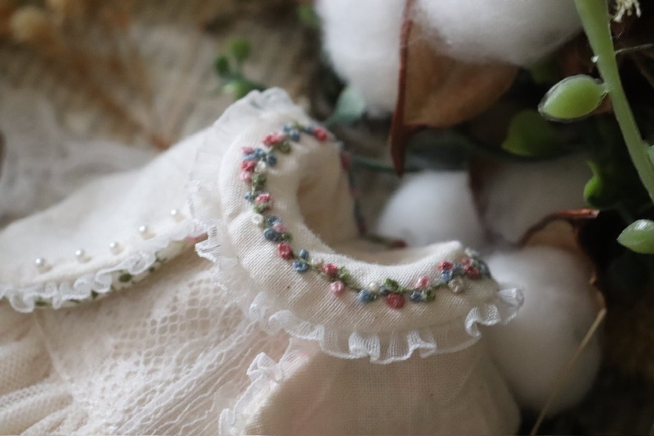 1つ1つの手作業の為刺繍やレース・飾りのサイズや配置・バランスは個体差があり、お使いの端末によりお色味やバランスなどお写真との誤差がある場合がございます.細かい指定などはできません.ご了承下さい.