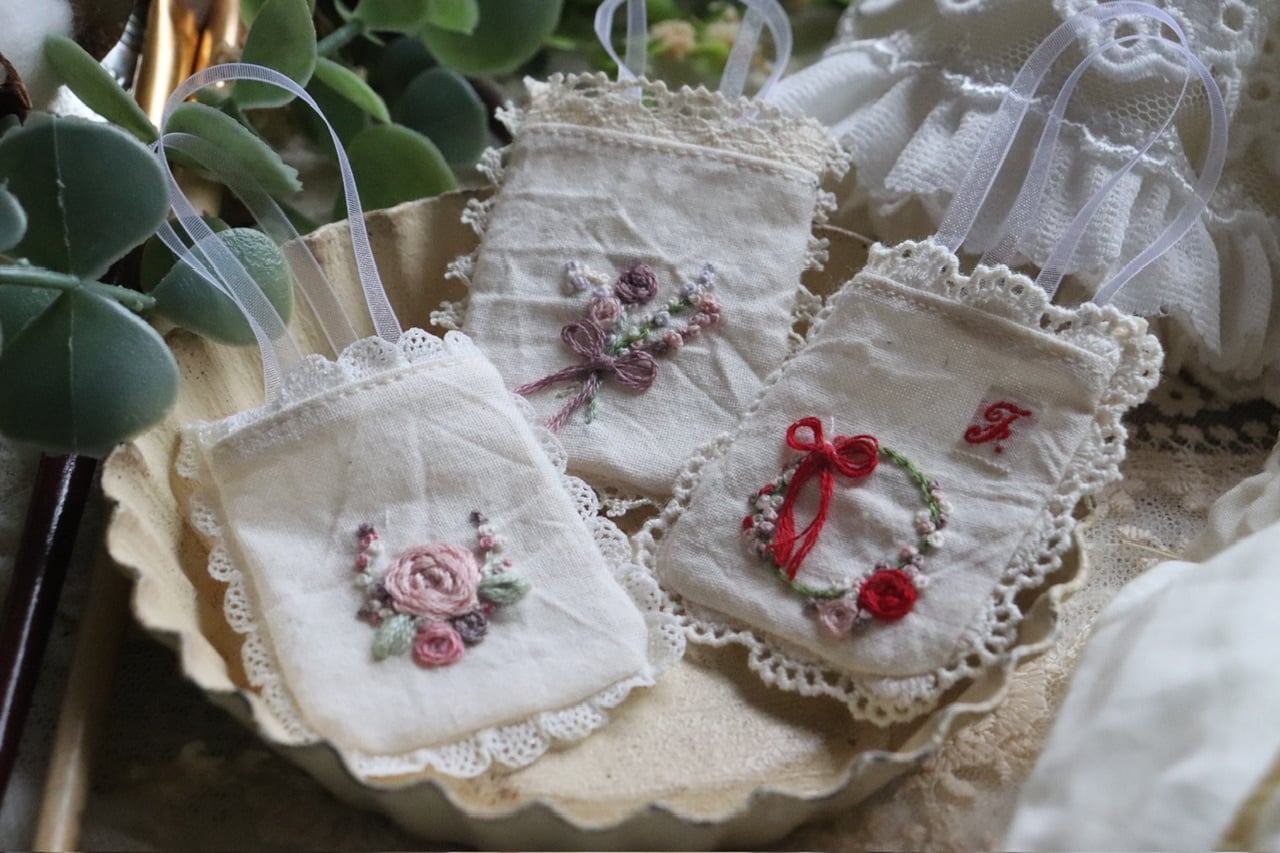 1つ1つの手作業の為刺繍やレース・飾りのサイズや配置・バランスは個体差があり、お使いの端末によりお色味やバランスなどお写真との誤差がある場合がございます.細かい指定などはできません.ご了承下さい.