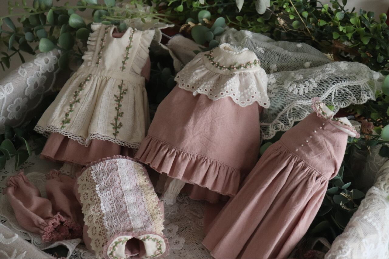 ピンク木の実刺繍のお洋服set