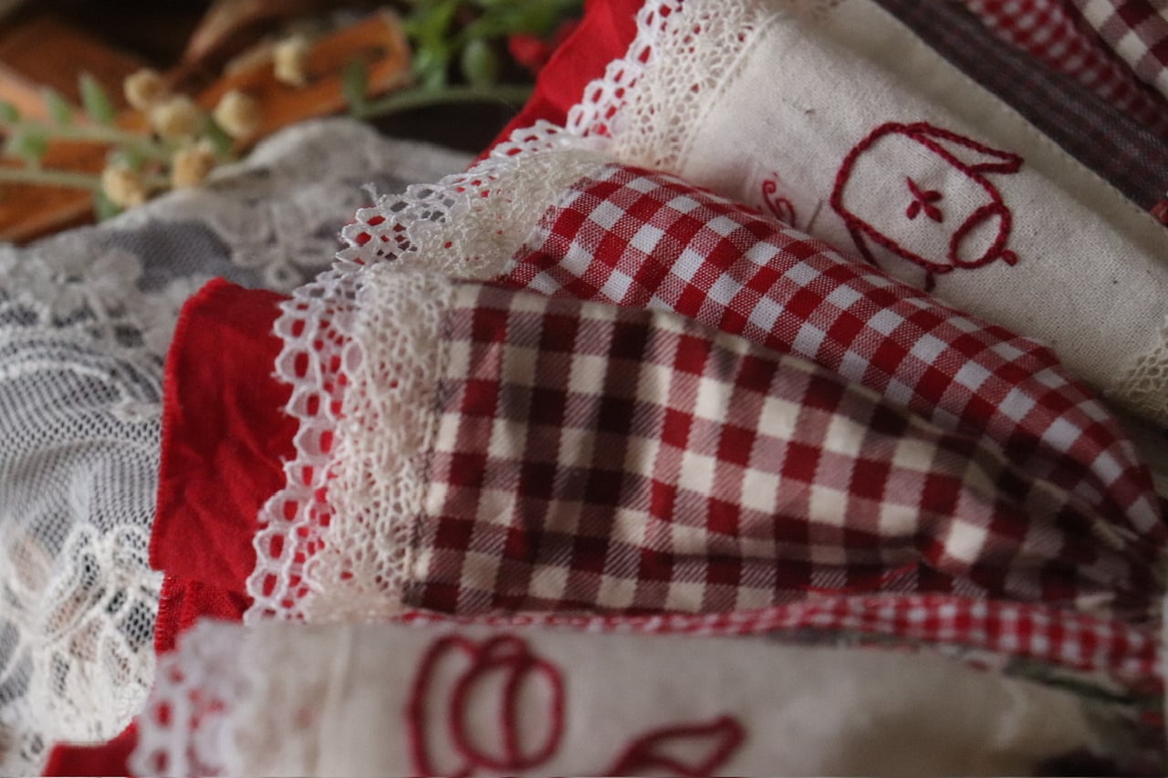 1つ1つの手作業の為刺繍やレース・飾りのサイズや配置・バランスは個体差があり、お使いの端末によりお色味やバランスなどお写真との誤差がある場合がございます.細かい指定などはできません.ご了承下さい.