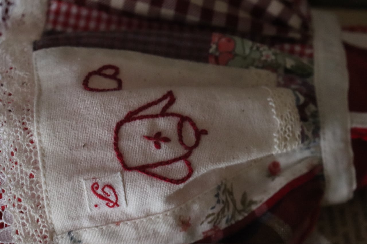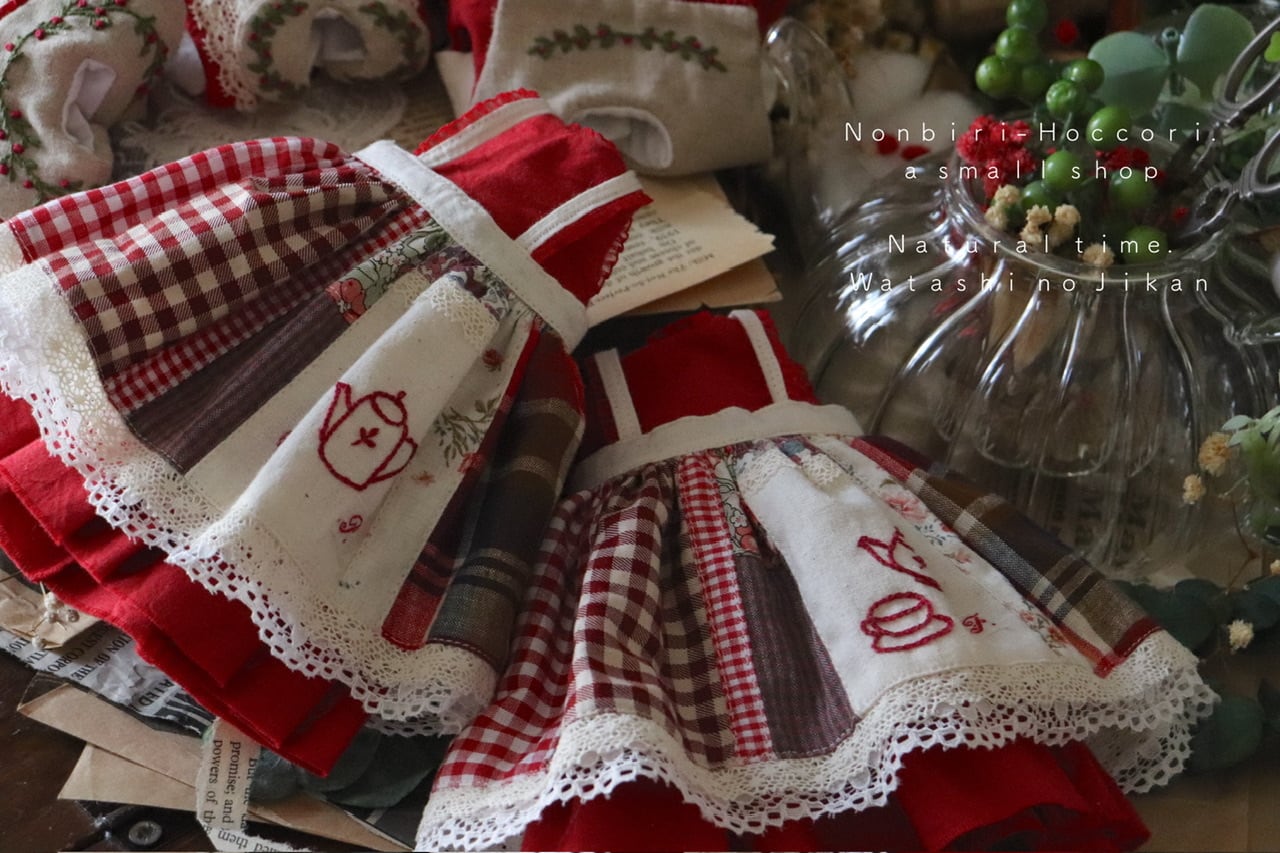 ティーポット刺繍のパッチワークお洋服set