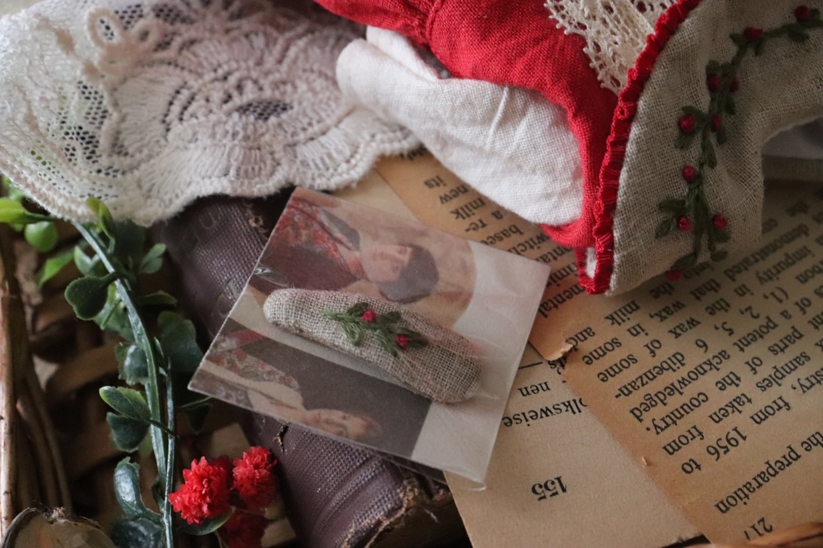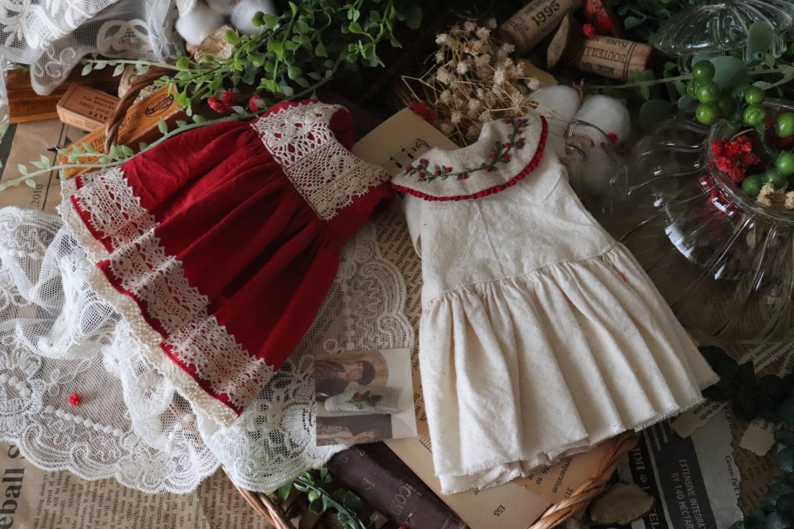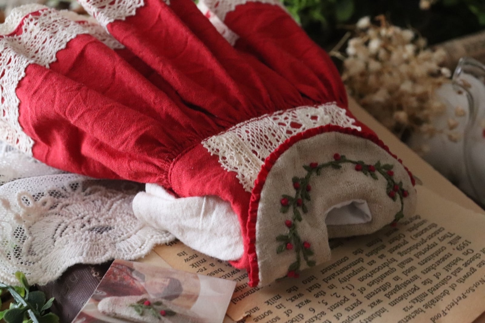 赤い木の実刺繍のお洋服set