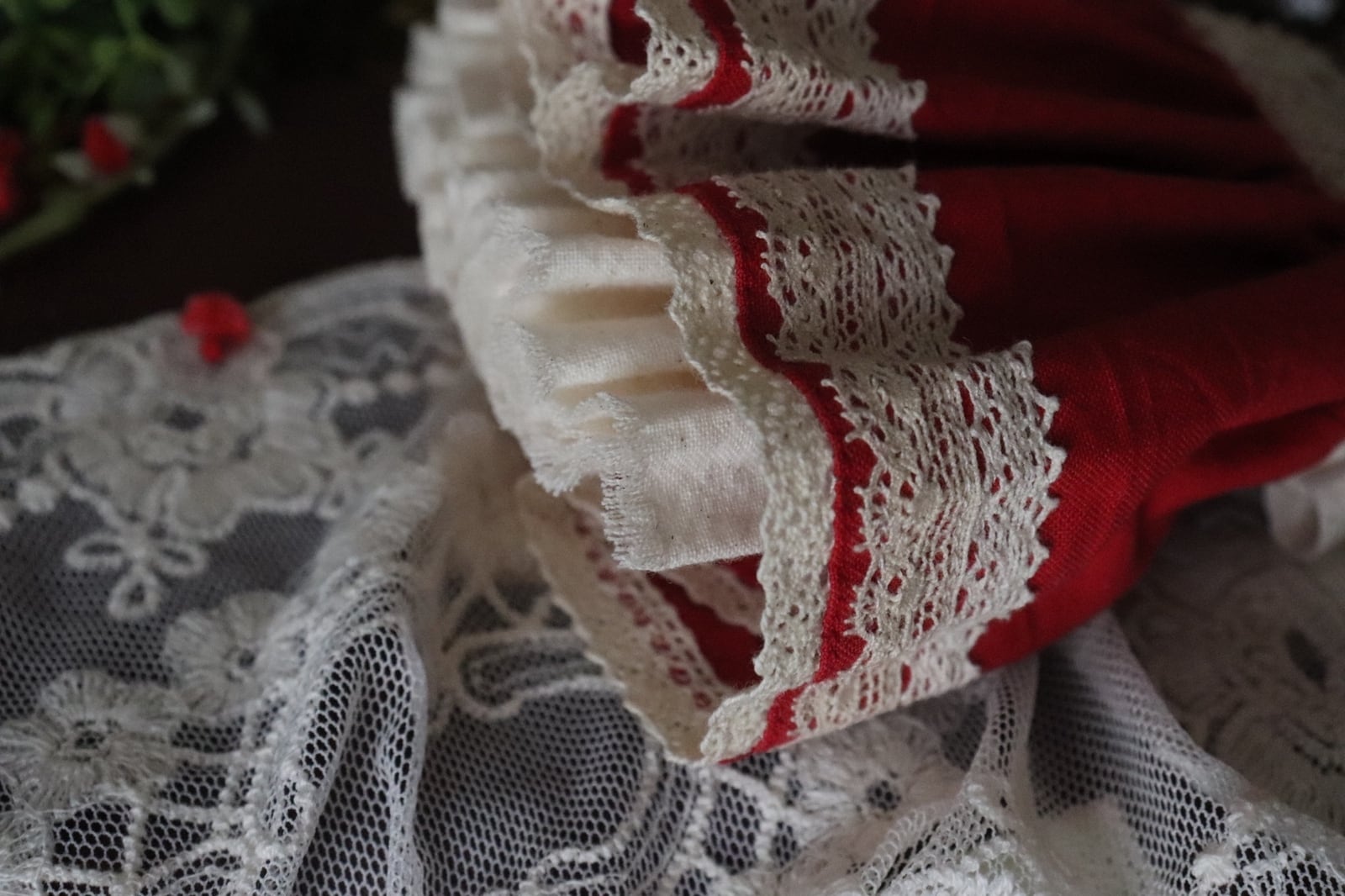・赤色レースエプロンワンピース…1点