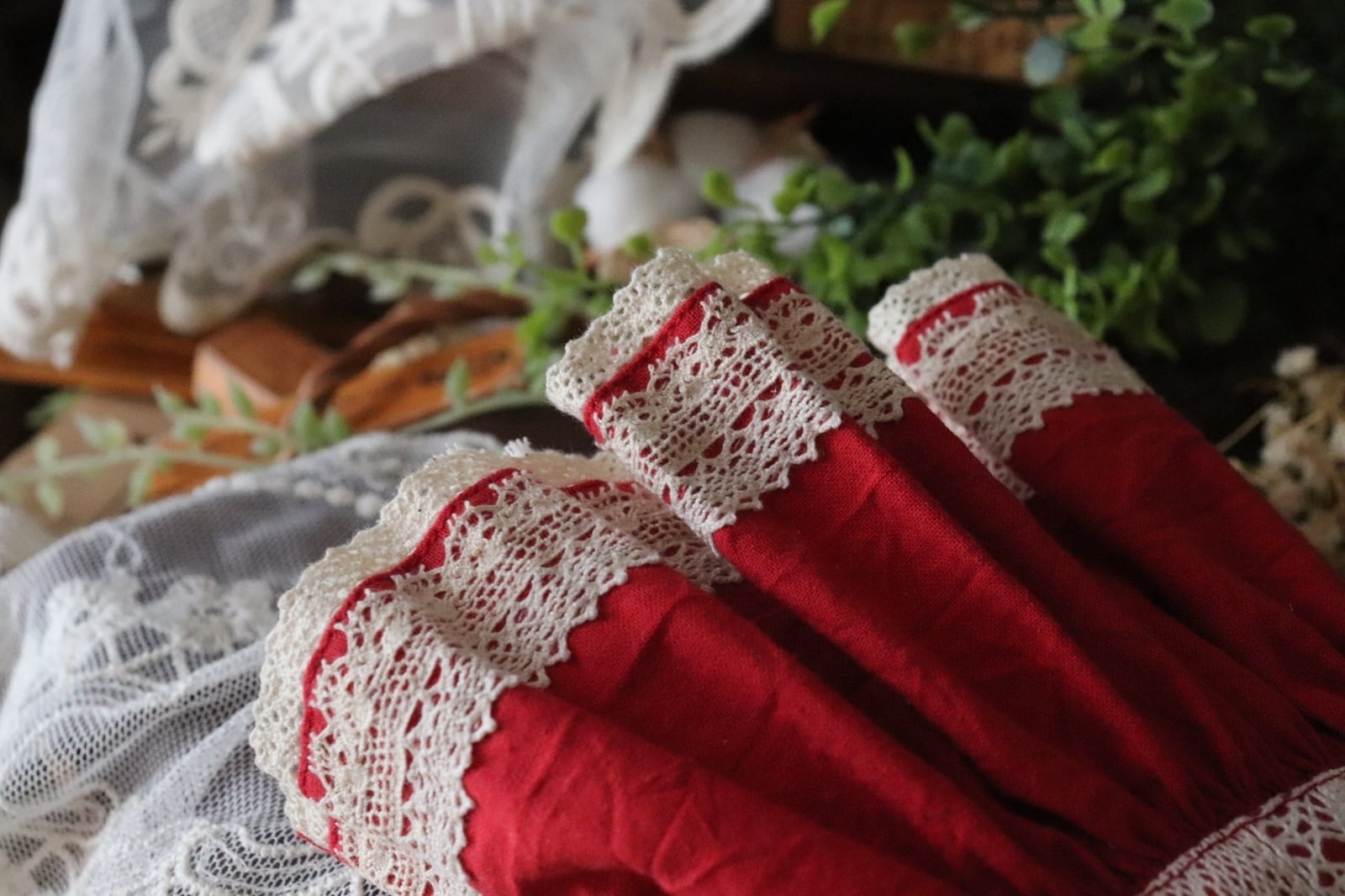 1つ1つの手作業の為刺繍やレース・飾りのサイズや配置・バランスは個体差があり、お使いの端末によりお色味やバランスなどお写真との誤差がある場合がございます.細かい指定などはできません.ご了承下さい.