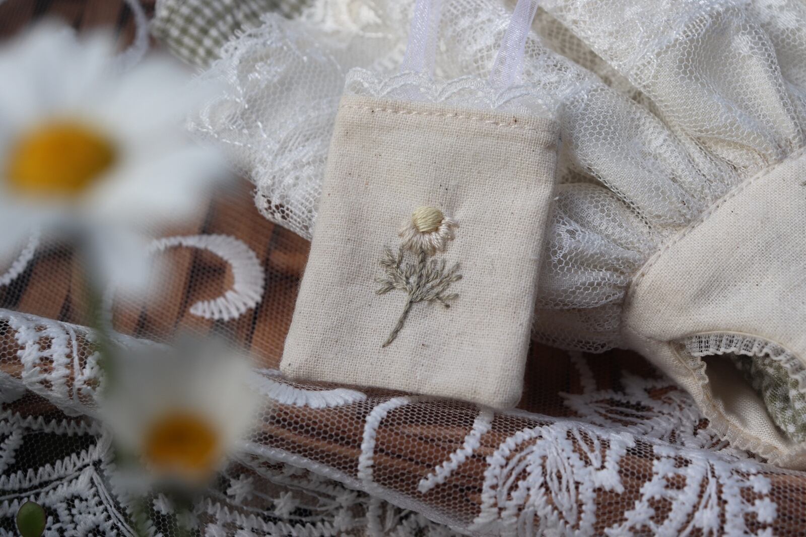 ・カモミール刺繍の小さなbag…1点