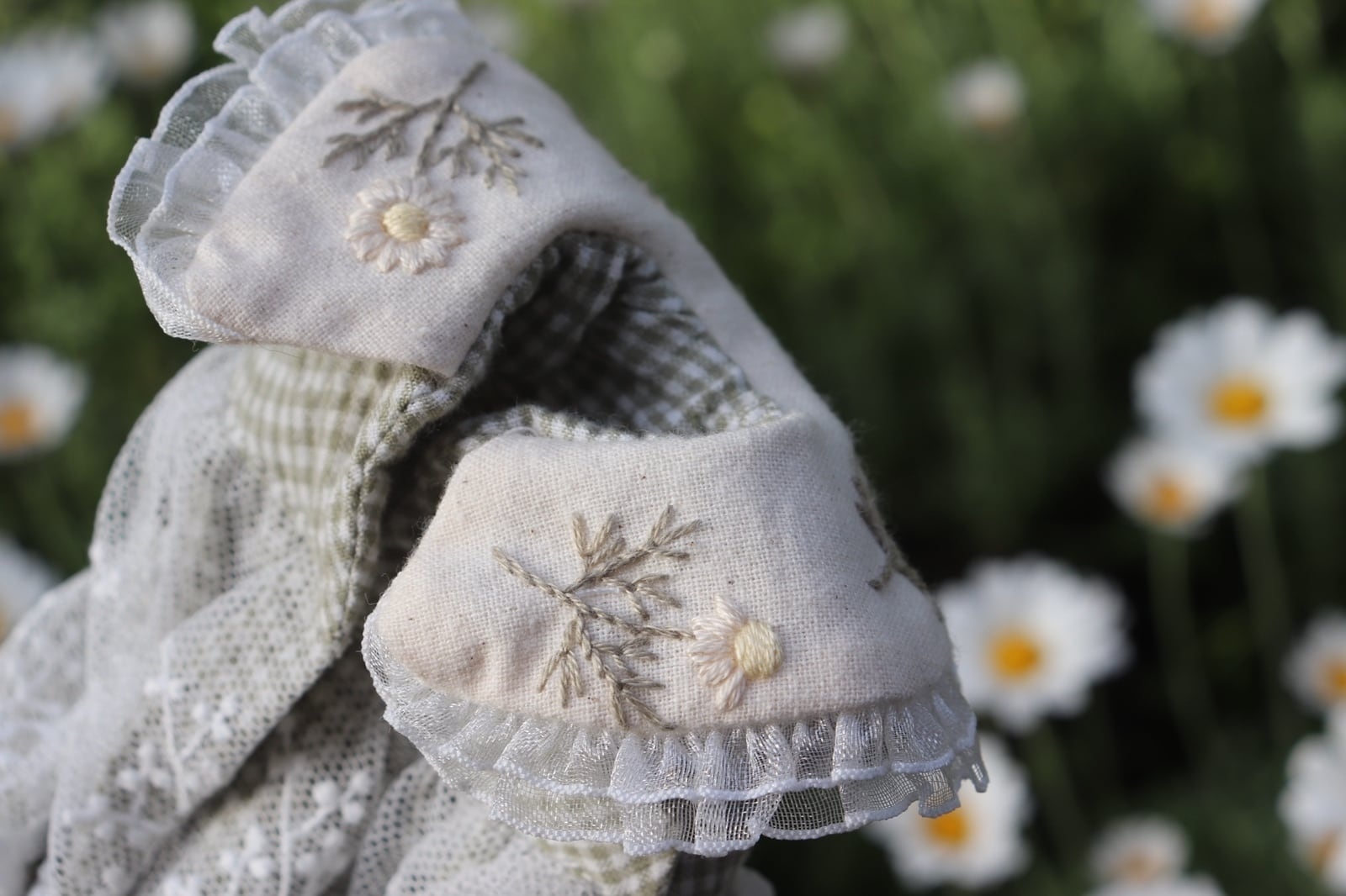 1つ1つの手作業の為刺繍やレース・飾りのサイズや配置・バランスは個体差があり、お使いの端末によりお色味やバランスなどお写真との誤差がある場合がございます.細かい指定などはできません.ご了承下さい.