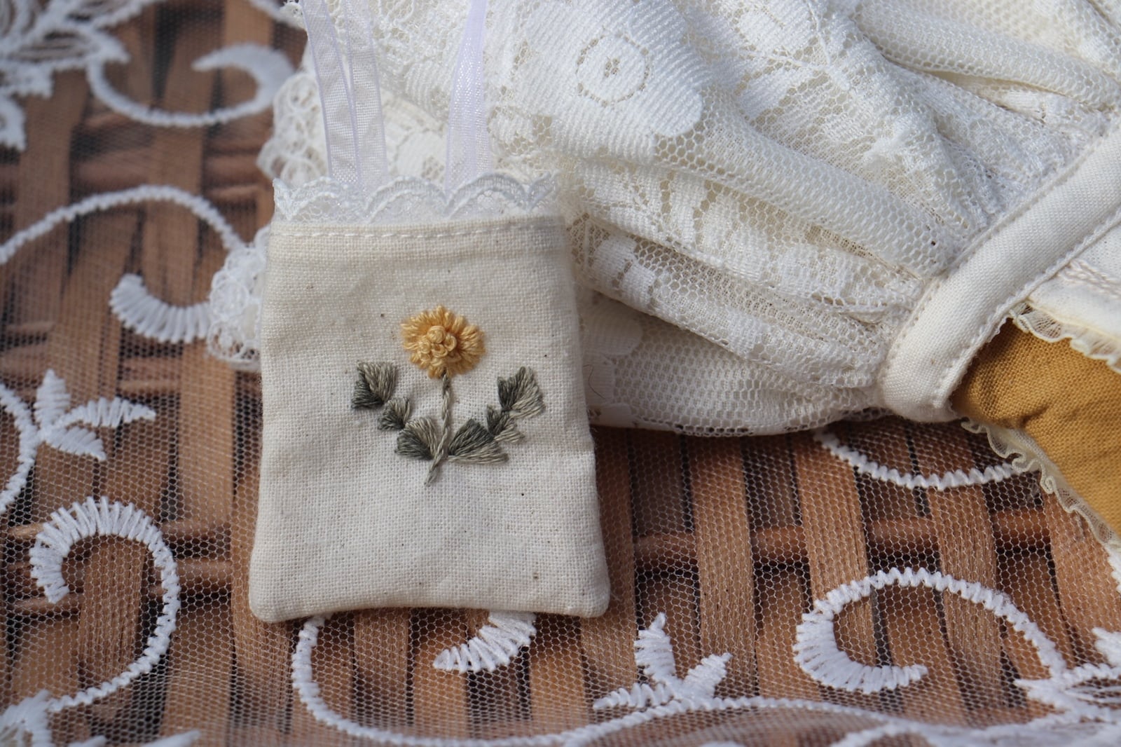 ・たんぽぽ刺繍の小さなbag…1点