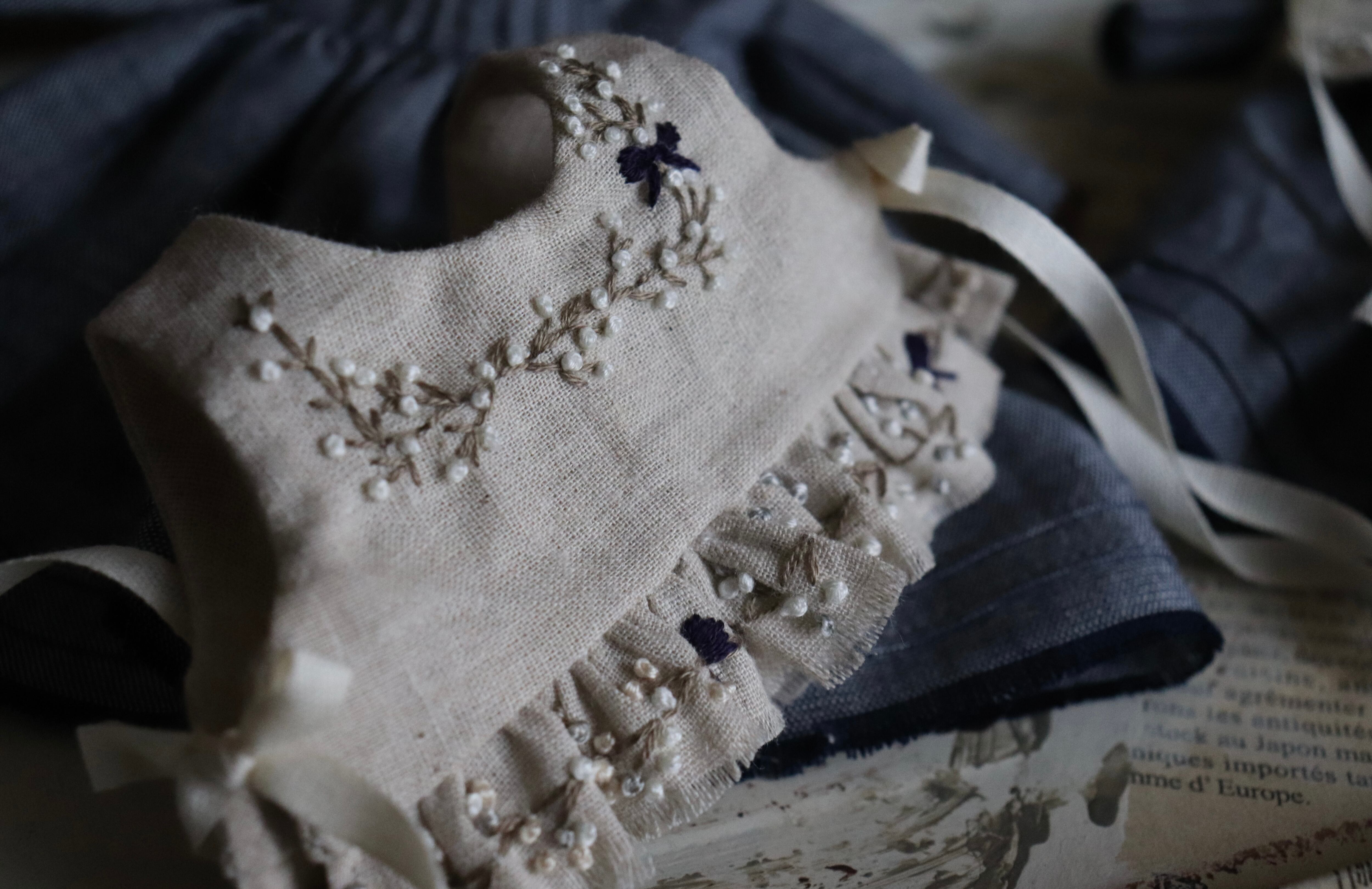 リクエスト予約再販売・白い木の実刺繍のフリルベストとワンピースのset