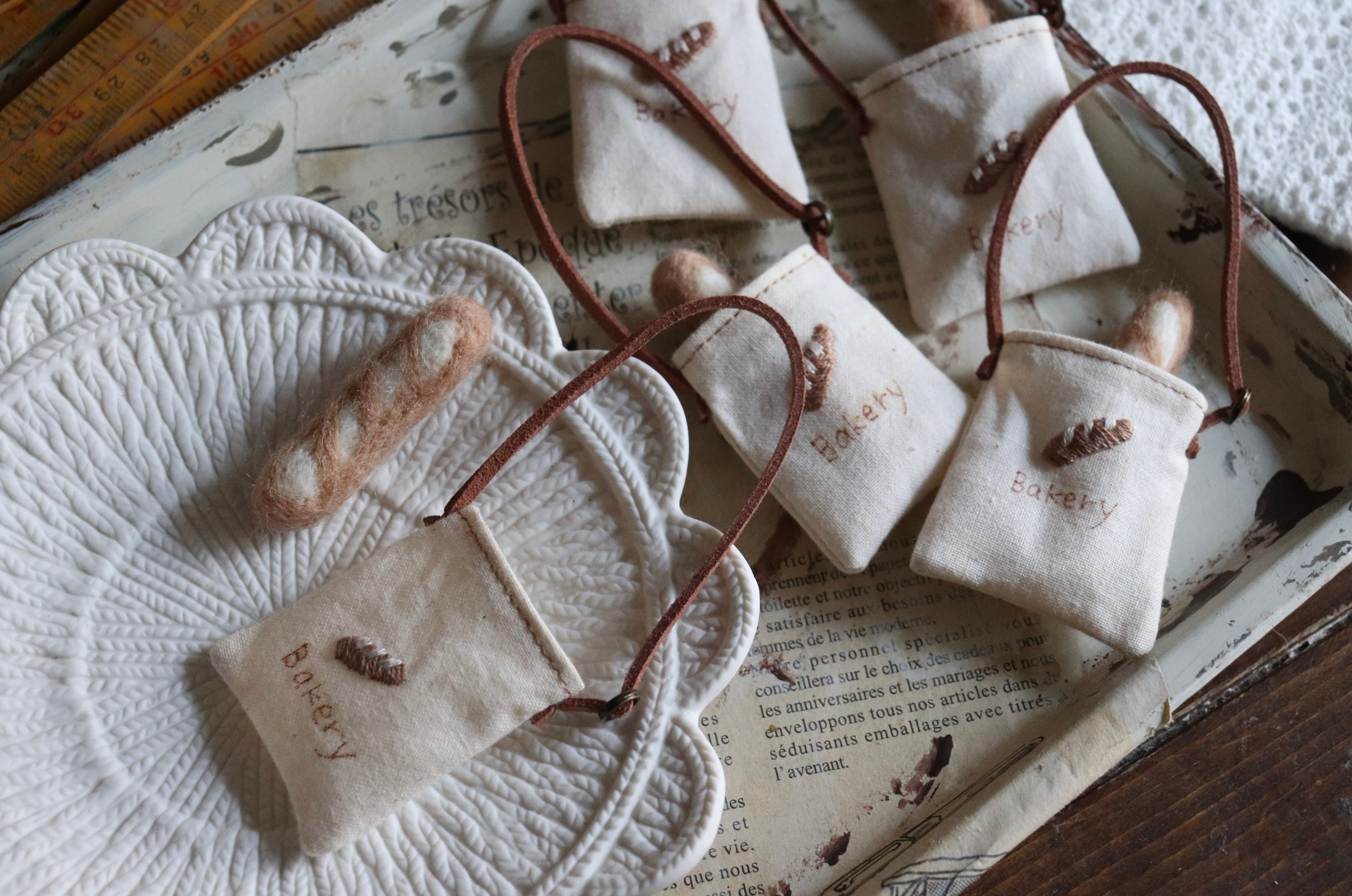 パン刺繍のショルダーbag・羊毛のパン付き
