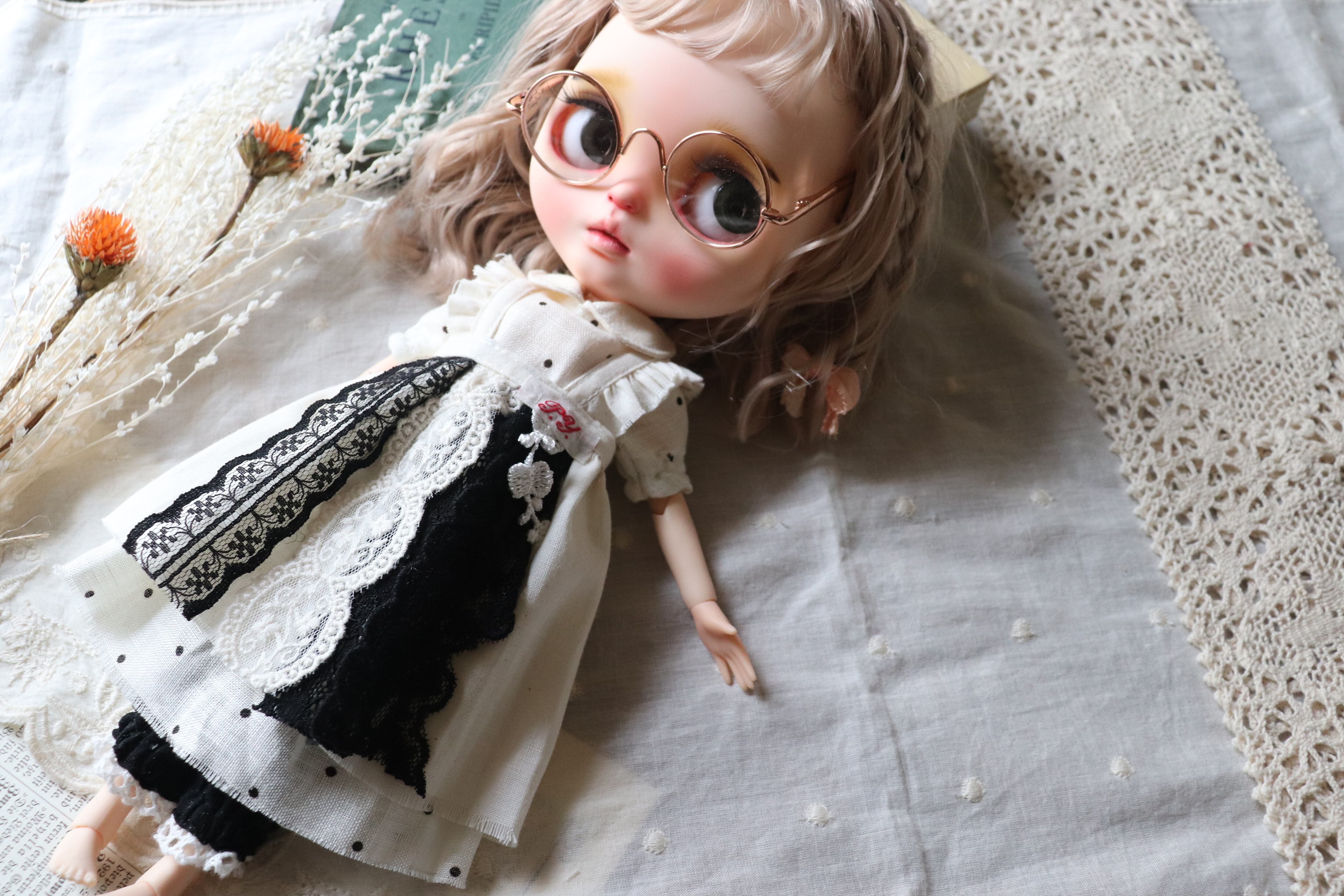 ※こちらのエプロンワンピースはゆったりタイプのため、ぴったりのシルエットをご希望の方はご購入をお勧め致しません。ピュアニーモSと当店オリジナルお人形さんにおすすめです.。ピッタリシルエットのトップスと合わせるのは△です