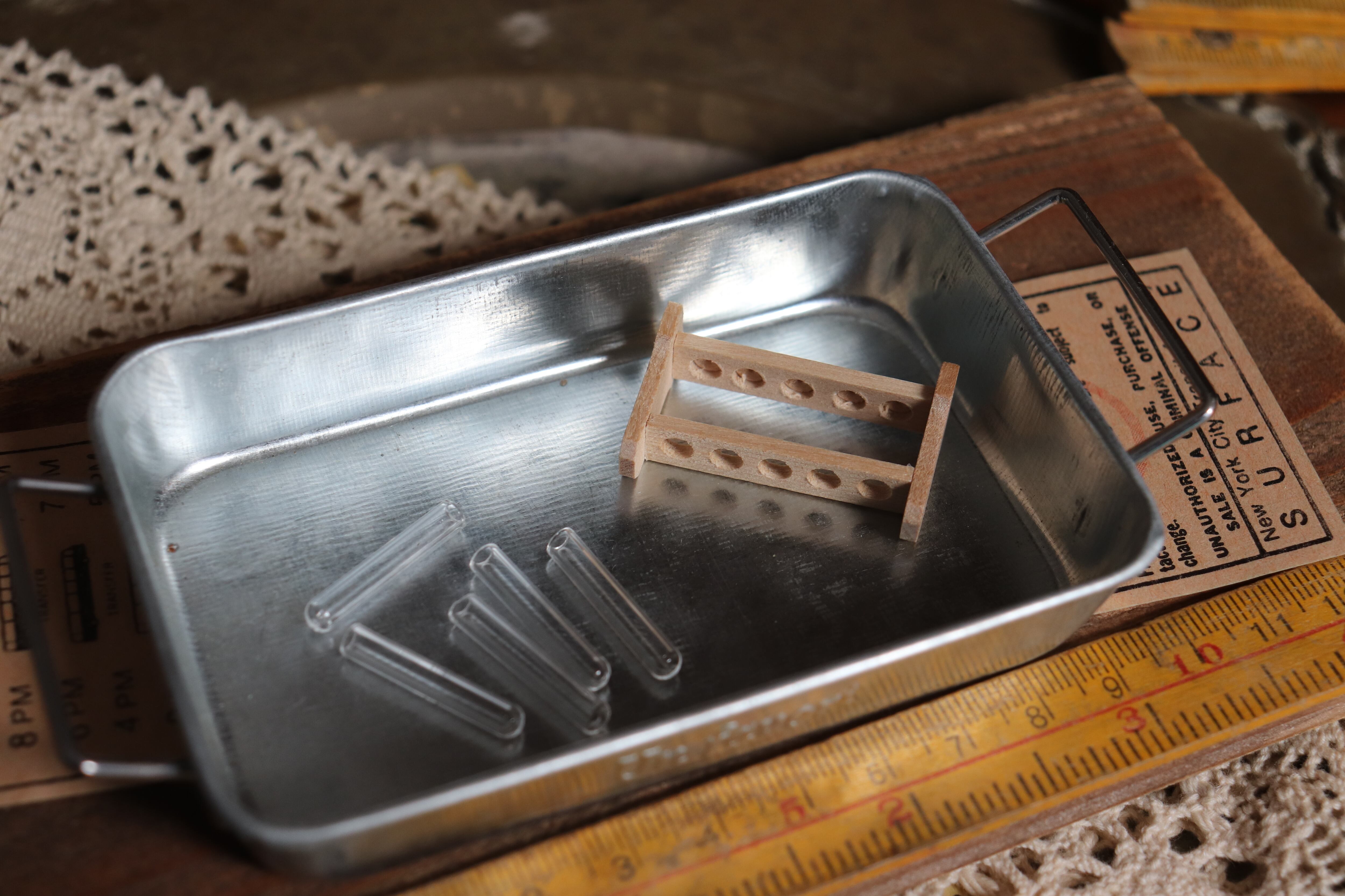 試験管立て(木)と試験管5本(ガラス)がまとめて一袋に入っている状態でのお届けとなります。
