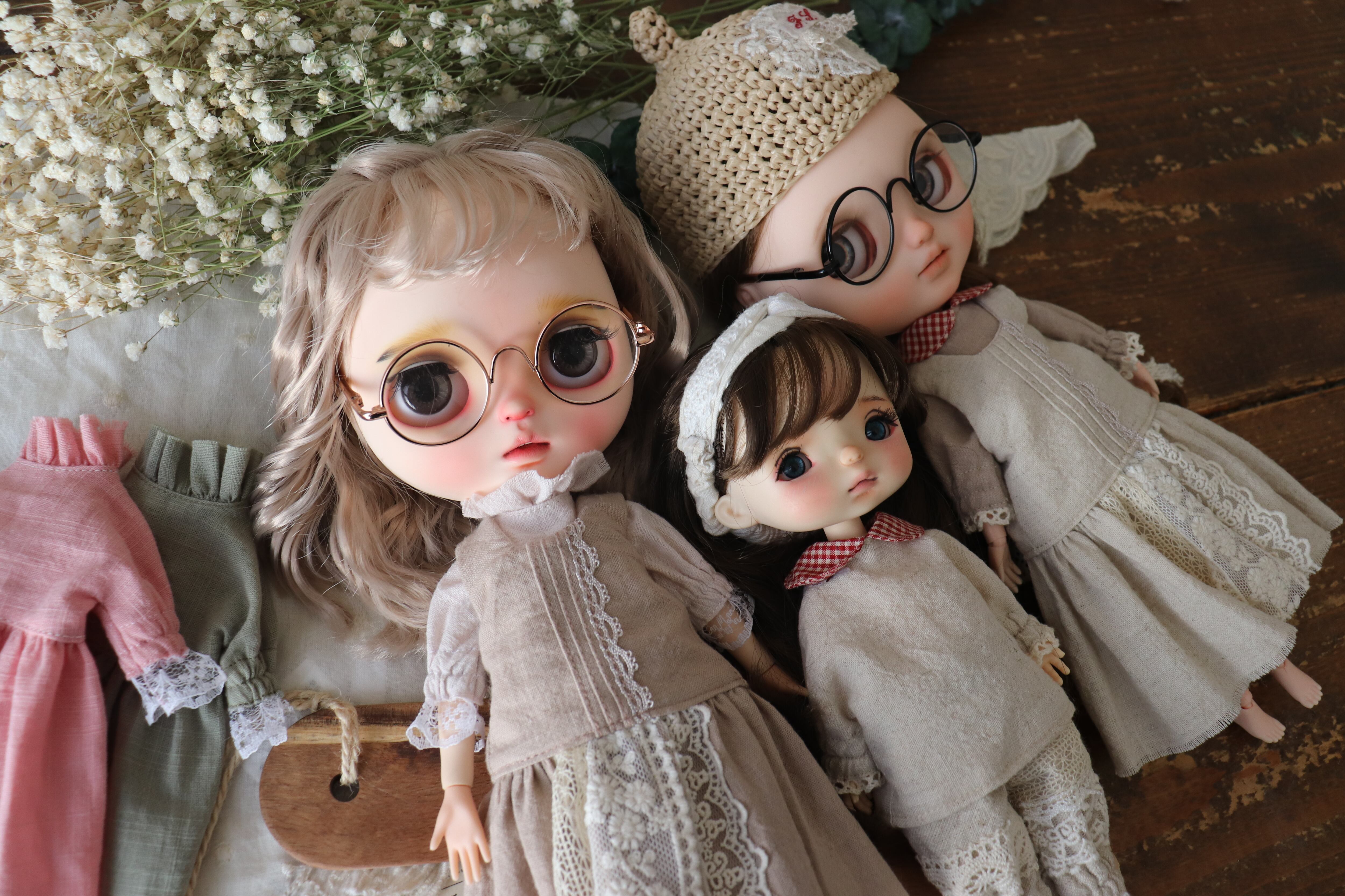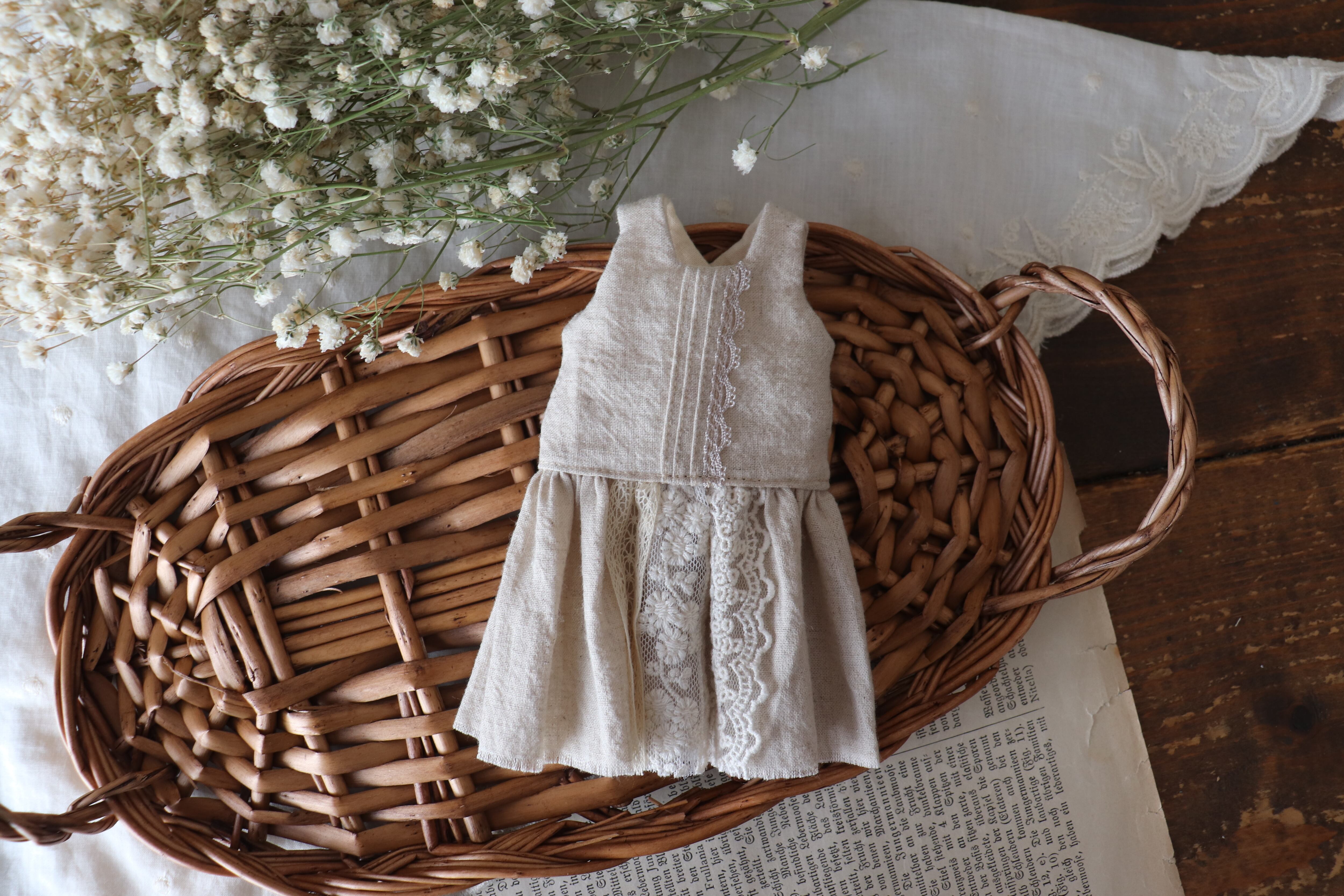 ※こちらのエプロンワンピースはゆったりタイプのため、ぴったりのシルエットをご希望の方はご購入をお勧め致しません。ピュアニーモSと当店オリジナルお人形さんにおすすめです.。ピッタリシルエットのトップスと合わせるのは△です