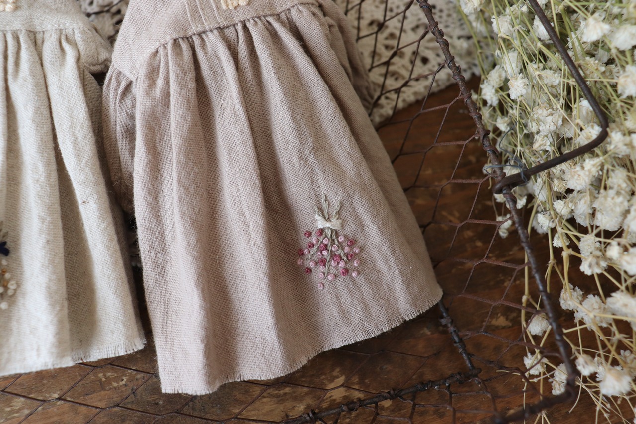 ヨークギャザーの刺繍入りナチュラルワンピース