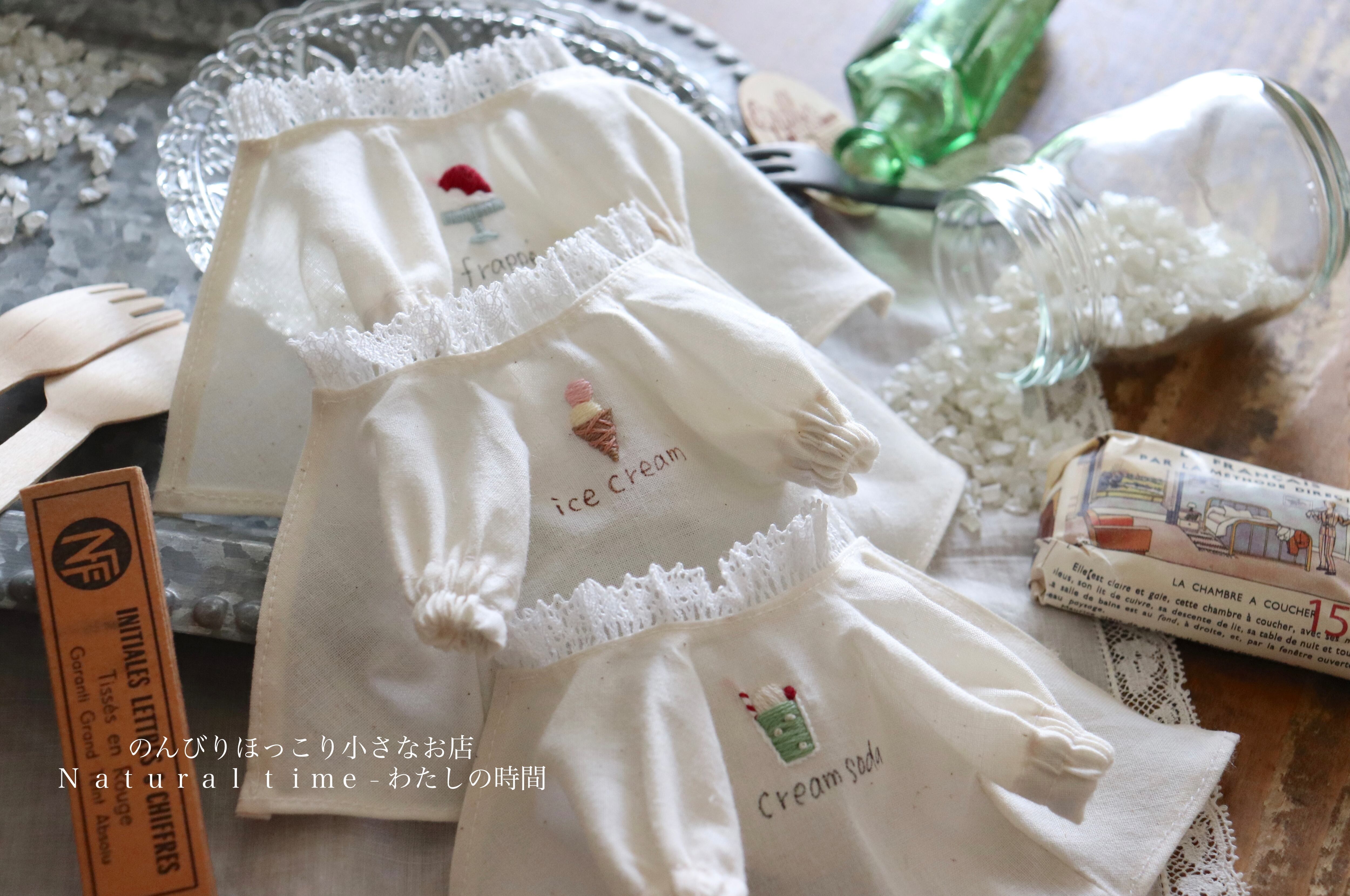かわいいおやつ刺繍のナチュラルトップス.