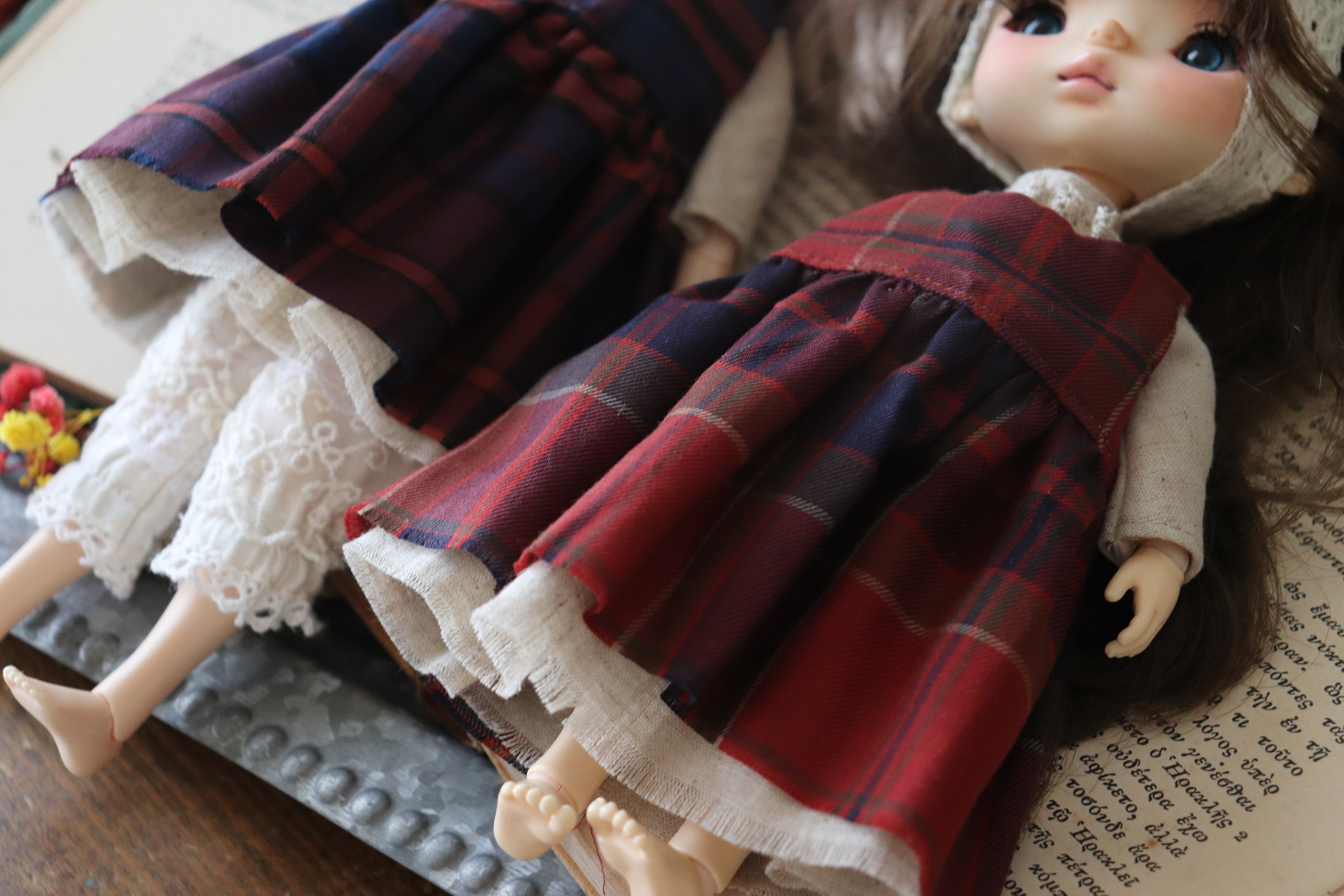 ※こちらのエプロンワンピースはゆったりタイプのため、ぴったりのシルエットをご希望の方はご購入をお勧め致しません。ピュアニーモSと当店オリジナルお人形さんにおすすめです.。ピッタリシルエットのトップスと合わせるのは△です