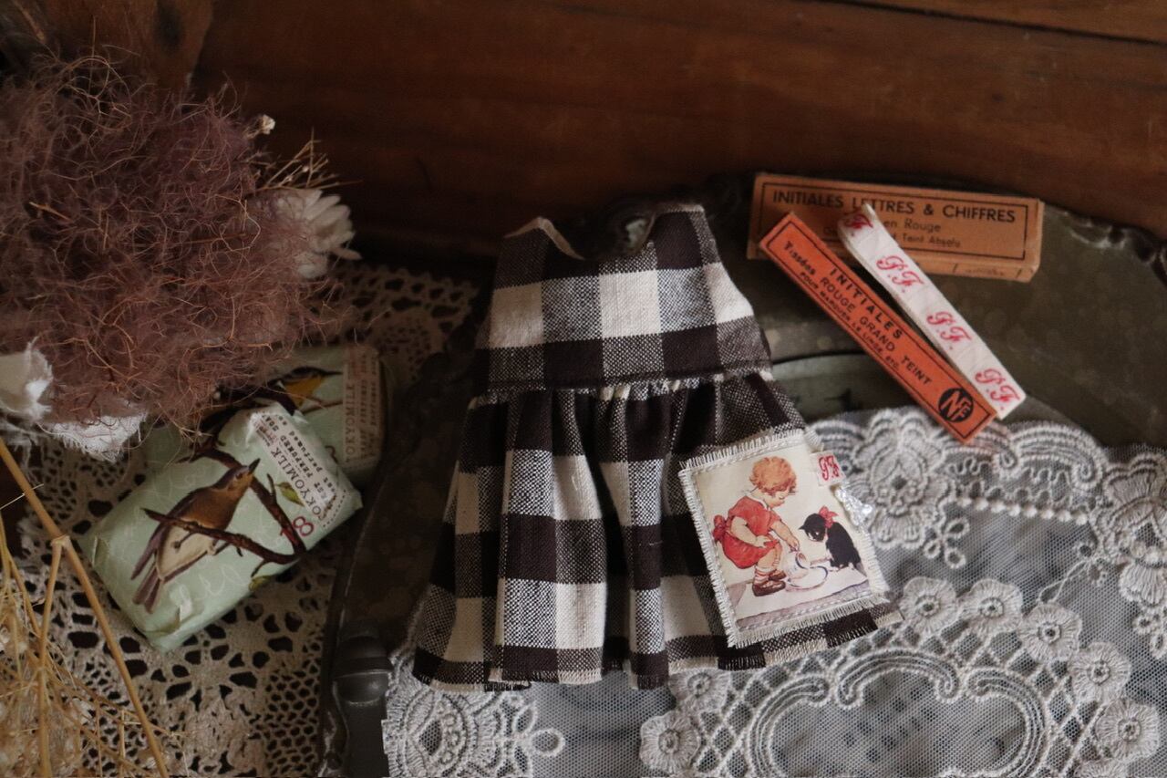 ※こちらのエプロンワンピースはゆったりタイプのため、ぴったりのシルエットをご希望の方はご購入をお勧め致しません。ピュアニーモSと当店オリジナルお人形さんにおすすめです.。ピッタリシルエットのトップスと合わせるのは△です