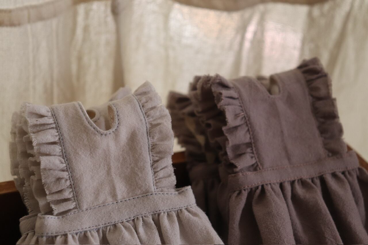 ※こちらのエプロンワンピースは重ね着用ゆったりタイプのため、ぴったりのシルエットをご希望の方はご購入をお勧め致しません。