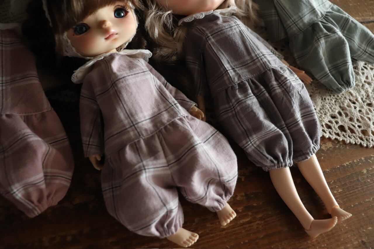 大きめチェック柄のオールインワン.